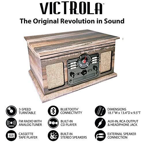 Specification: Victrola Nostalgic 6-in-1 Bluetooth Record Player & Multimedia Center with Built-in Speakers – 3-Speed Turntable, CD…