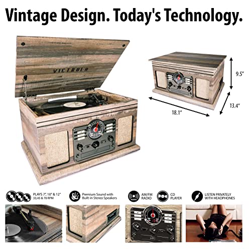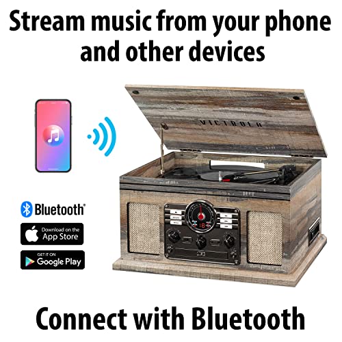 Victrola Nostalgic 6-in-1 Bluetooth Record Player & Multimedia Center with Built-in Speakers – 3-Speed Turntable, CD…