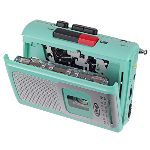 Jensen CR-100TE Teal Personal Cassette Player/Recorder is both portable and convenient. It also includes an AM/FM radio, so take it to the beach, the ball game, or anywhere else you want to listen to your favorite radio station, play old mix tapes, or audiobooks. Enjoy clear, static-free audio from the built-in speaker, and record from the radio or by using the built-in condenser microphone.